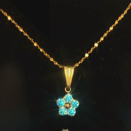 Celeste Flower Sparkle Necklace – Mid Blue 5A Zircon Stainless Steel Flower Necklace | Handmade | Gift for Her