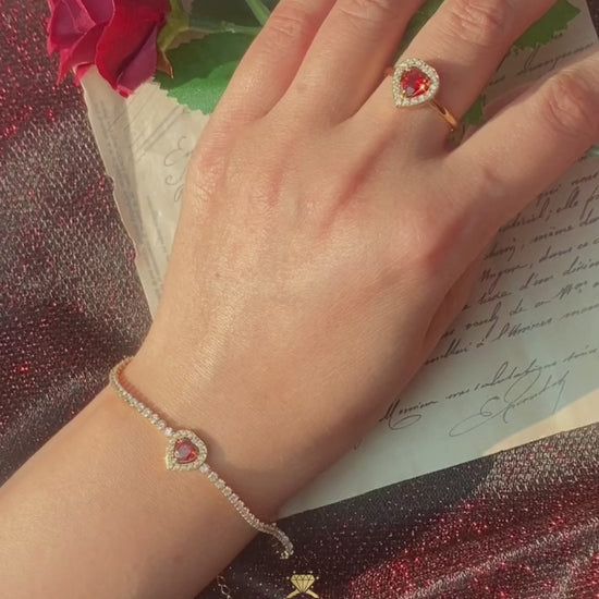 Garnet Birthstone Sparkle Bracelet – January Red 5A Zircon Stainless Steel Bracelet | Handmade | Gift for Her