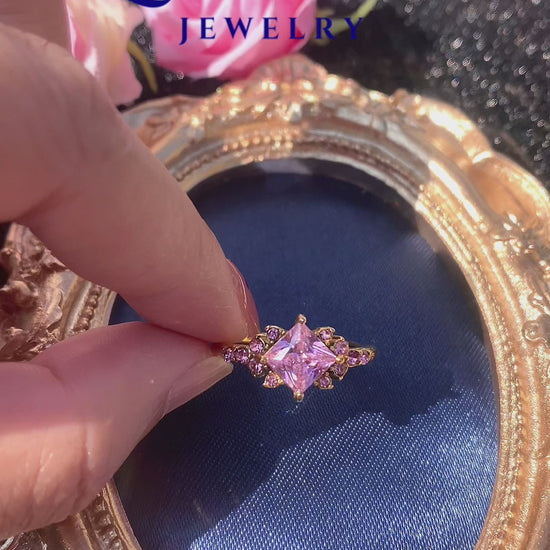 Elena Pink December Birthstone Sparkling 5A Zircon Stainless Steel Adjustable Ring – Handmade Jewelry